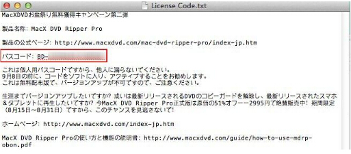 http://www.macxdvd.com/giveaway/holiday-giveaway-japanese.htmにアクセスして、「ただ今無料版を獲得」ボタンをクリックすると、プログラム本体とライセンスコードの入ったzipファイルがダウンロードできます。解凍してインストールしてください。そうして、通常は5080円するソフトを無料で手に入れます。
